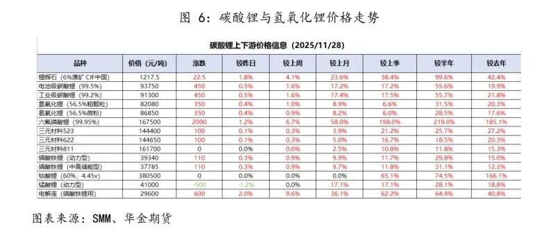 整个 11 月份,伴随着价格强势上涨,碳酸锂期货成交、持仓不断放大,月 度累计成交量 2699 万手,持仓 107 万手,创下了上市以来的最高记录。11 月末主 力合约 LC2605 月度涨幅达到 19.42%,创下了去年 2 月份以来的第二个月度最大 涨幅。